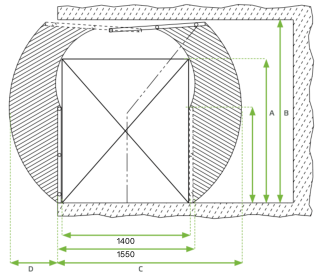 Maatvoering kantelhek type B (mm)