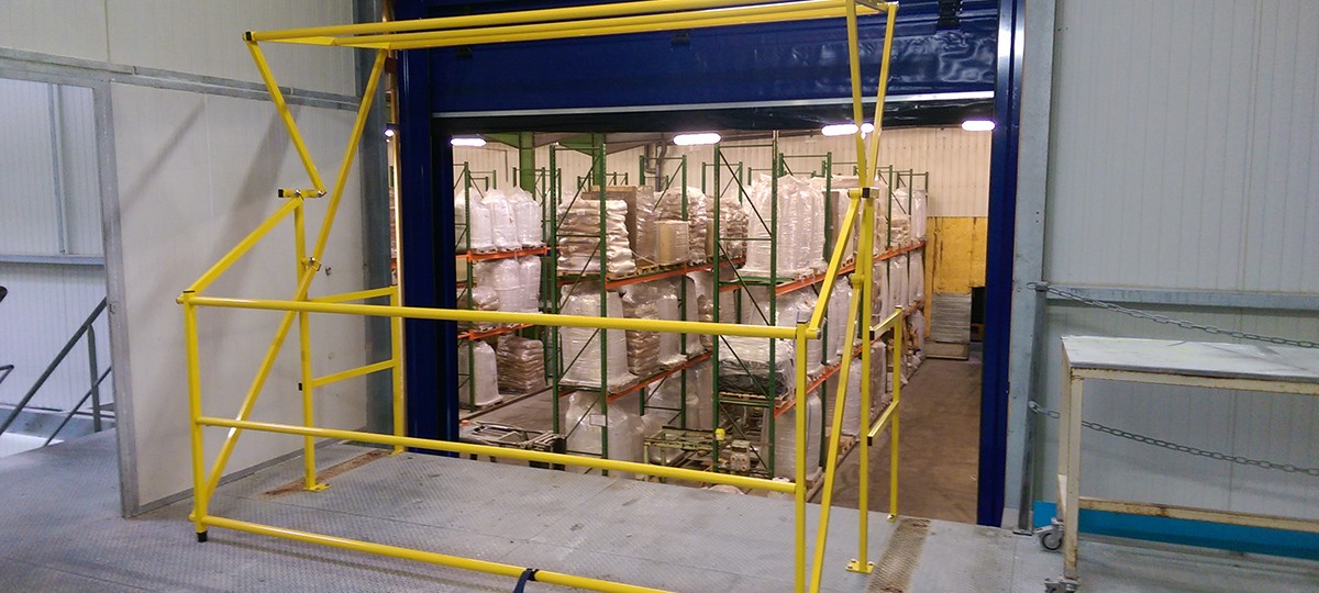 Het veiligheidskantelhek bevindt zich aan de rand van de tussenvloer en is geschikt voor hogere pallet lasten. Het beweegbare gedeelte van het kantelhek gaat open wanneer een vorkheftruck een pallet naar boven brengt. Voordat er gelost wordt kantelt het hek naar de andere kant. Zo blokkeert het veiligheidskantelhek de lege ruimte waarna de toegang naar te lossen pallet zich opent.